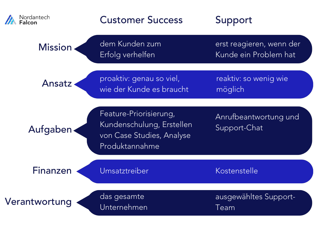 CS Manager stellen sich die Aufgabe nicht nur ein Service für ihre Kunden zu sein, sondern bieten verschiedenste Ressourcen für das Unternehmen an, um ihren Kundenerfolg zu steigern. Wenn man darüber nachdenkt, wie breit diese Definition ist, werden die Unterschiede in Bezug auf den Support schnell deutlich. Hier sind einige davon: