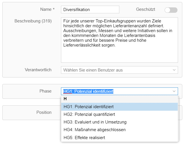 Maßnahmen werden in den Potenzialphasen vorgeschlagen, grob geplant und quantifiziert. Es folgt eine Validierung zum Beispiel durch das Controlling oder den Projektverantwortlichen. Nun folgen die Feinplanung und die Freigabe, sowie anschließend die eigentliche Durchführung. Am Ende steht die Realisierung, bei der festgestellt wird, was das ganze nun bringt oder gebracht hat.