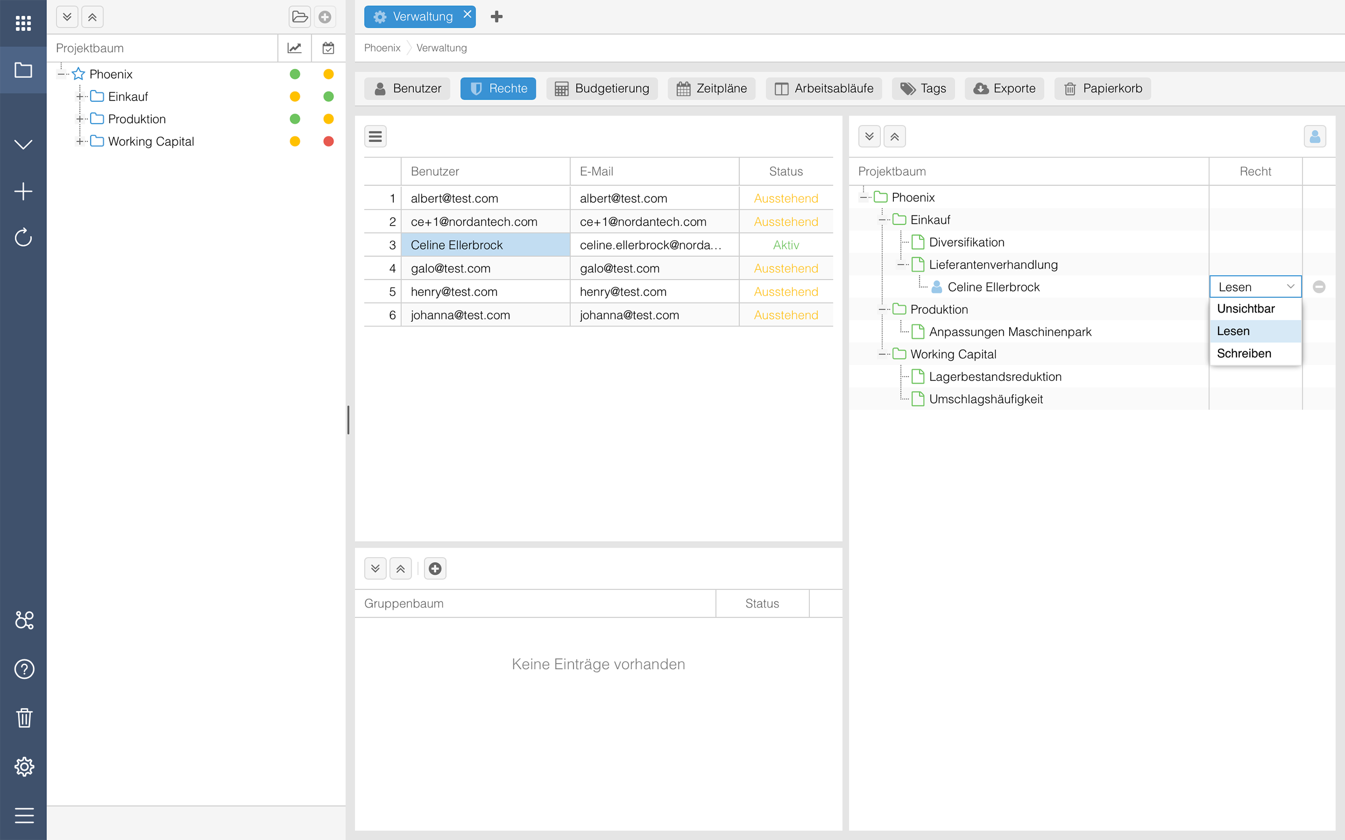 Viele Köche verderben die Excel-Datei: Excel-Dateien werden per Mail versendet, befinden sich im Schreibschutzmodus oder erhalten auf einmal mysteriöse Formelfehler. Auch flexible User-Rechte und differenzierte Wiederherstellungsfunktionen sucht man in Excel vergeblich. Ein gemeinsames Arbeiten im Sinne einer Multi-User-Anwendung ist damit nur schwer möglich. Wenn Teammitglieder projektübergreifend an verschiedenen Stellen einbezogen werden, bedeutet das die Verknüpfung von mehreren möglicherweise unterschiedlich formatierten Excel-Dateien, wodurch sich die Probleme potenzieren. Eine geeignete Projektportfolio-Software schafft Abhilfe, bietet User-Management und Zugriffsrechte nach Maß und ermöglicht simultanes Arbeiten auch in sehr großen Teams.