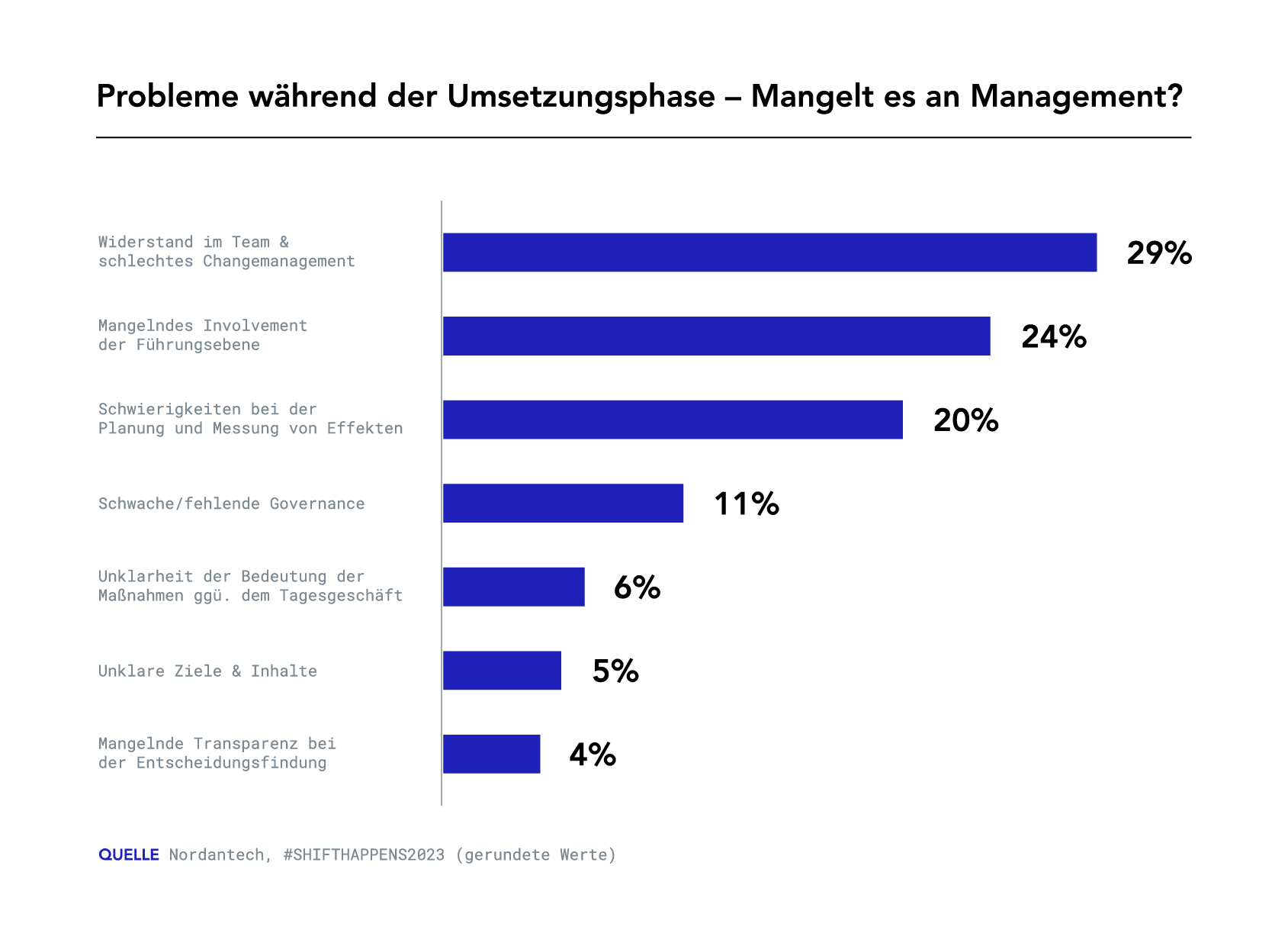 Ein gutes Tool ist zwar ein Katalysator, aber nicht die alleinige Lösung für ein erfolgreiches Projektportfolio. Andere Erfolgsfaktoren, insbesondere das Transformationsmanagement, spielen eine wichtigere Rolle für die Erreichung Ihrer strategischen Ziele. Studien wie #SHIFTHAPPENS2023 zeigen, dass zu den häufigsten Herausforderungen in Transformationssituationen Widerstände im Team, schlechtes Veränderungsmanagement, mangelnde Einbindung der Führungsebene, unklare Ziele und unklare Prioritätensetzung gehören.