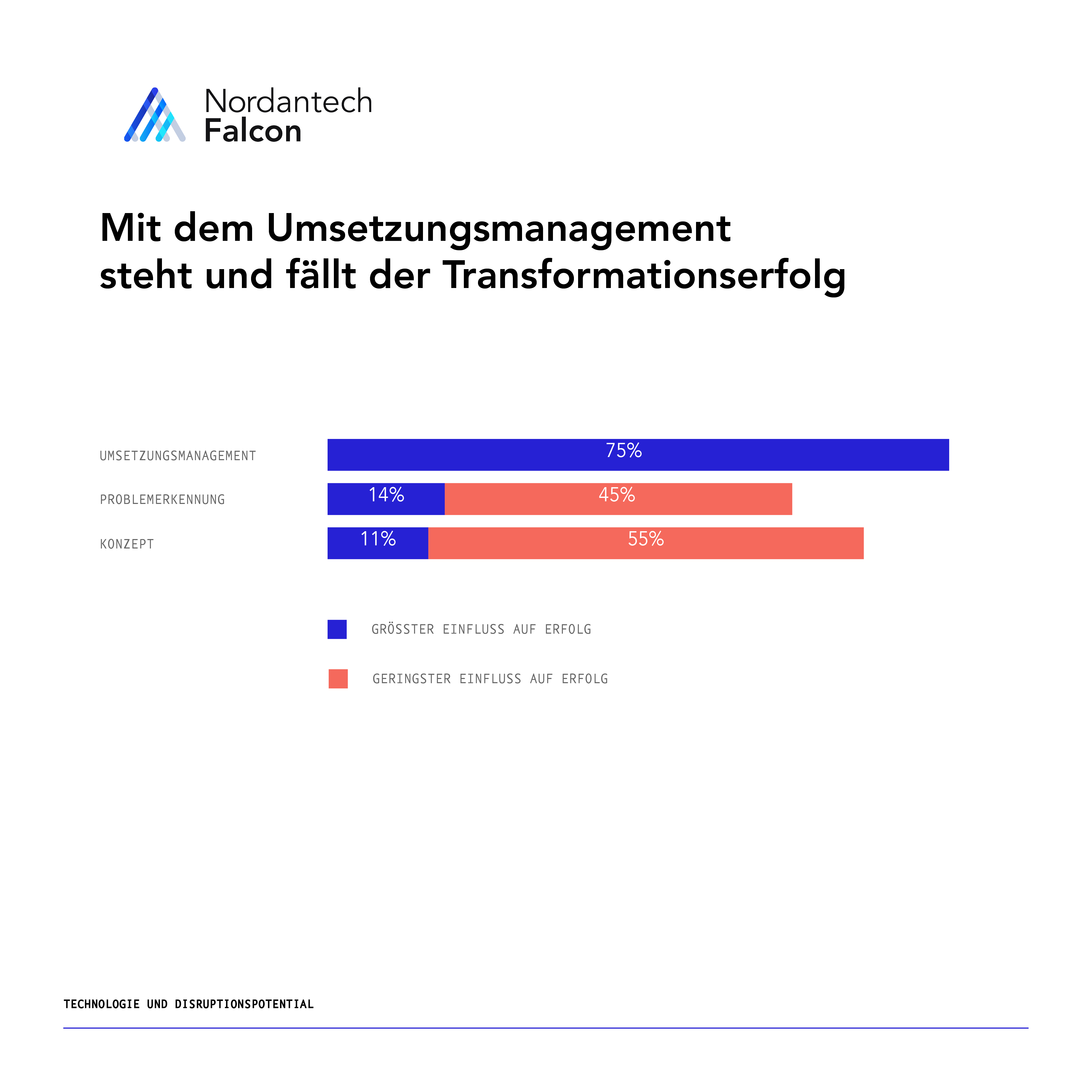 Nicht alle Phasen der Transformation werden als wichtig gewertet und sind gleichermaßen komplex. Die Umsetzungsphase ist der wichtigste Erfolgsfaktor, denn Analyse und Konzept allein reichen nicht aus, sagen unsere Experten! Die Umsetzungsphase ist die mit Abstand schwierigste und dauert am längsten. Gerade in diesem Stadium sind vor allem gute Berater gefragt, aber auch die richtigen Tools und Instrumente.