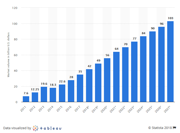 Big data market size revenue forecast worldwide from 2011 to 2027 (in billion U.S. dollars)