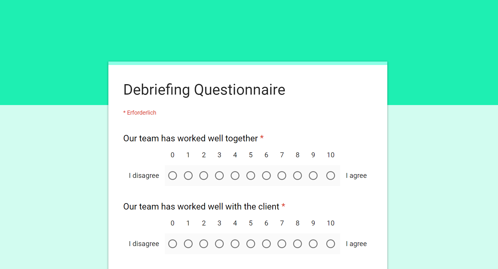 A few days before the meeting takes place, you should send a questionnaire to all participants about the course of the project. This will encourage everyone to reflect on the project. Also, the preparation time for everyone is automatically reduced because they are guided from question to question.