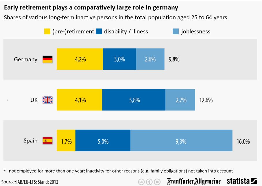 An alternative to early retirement is partial retirement, in which employees reduce their working hours to 50% before retirement. This eliminates some of the labour costs, but of course also reduces the availability of employees. In the case of semi-retirement, employers must ensure that a wage increase of at least 20% is provided for by law - your employees therefore receive a higher hourly rate. The employee can take the released working time either continuously or in a block model. With this variant, the employee continues to work half of the working time planned until retirement full-time, but only receives the part-time salary. At the end of the first half of the previous pension period, the employee is released from work and continues to receive the reduced salary plus the wage increase.