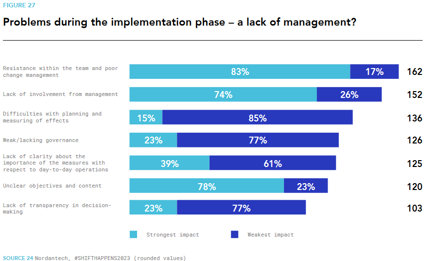 While a good tool is a catalyst, it's not the sole solution for a running project portfolio. Other success factors, particularly transformation management, play a more significant role. As studies like #SHIFTHAPPENS2023 reveal, common challenges include team resistance, poor change management, lack of involvement at the leadership level, unclear goals, and ambiguous prioritization. A successful PMO can address these issues, by acting as a transformation service provider, maintaining the transformation through active management, and regular reporting to relevant stakeholders. The introduction of a tool provides an ideal foundation to establish necessary structures and minimize administrative efforts during implementation.